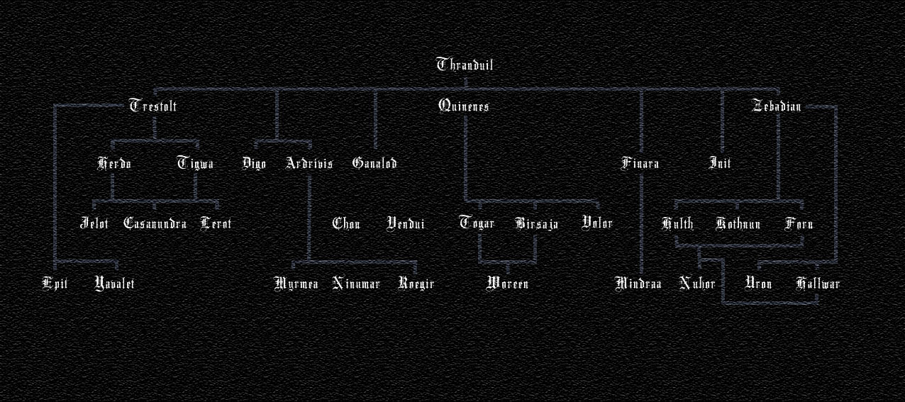 Der Stammbaum zeigt die Götterstufen der Hordo, der Nievari, der Winar und der Argat auf und zieht Verbindungen zwischen den Allmächtigen, wie sie in den meisten Geschichten der Erschaffung der Welt beschrieben werden.